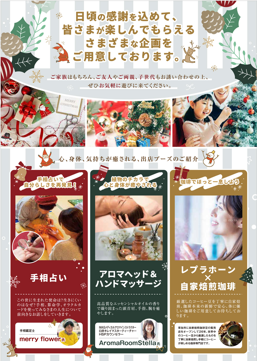 心、身体、気持ちが癒されるブースが紹介されています。