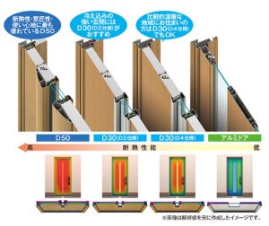 特に「D50 高断熱ドア」は、アルミと樹脂を組み合わせた構造にトリプルガラスを採用しており、玄関でもしっかり暖かさを守る、トップクラスの断熱性能を持っています。 -