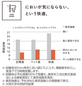 エコカラットプラスはそれらの有害物質を吸着、低減します。