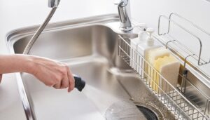 汚れがスムーズに流れるシンクや広い範囲の汚れをまとめて洗い流せる