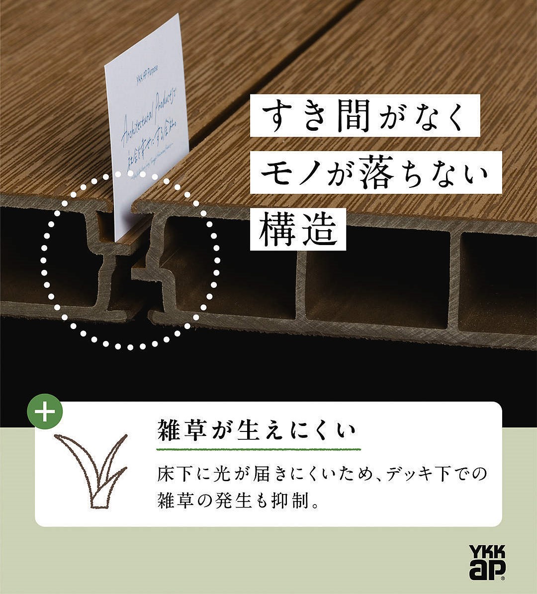 光がもれにくく、デッキ下に草が生えにくい構造です。 -