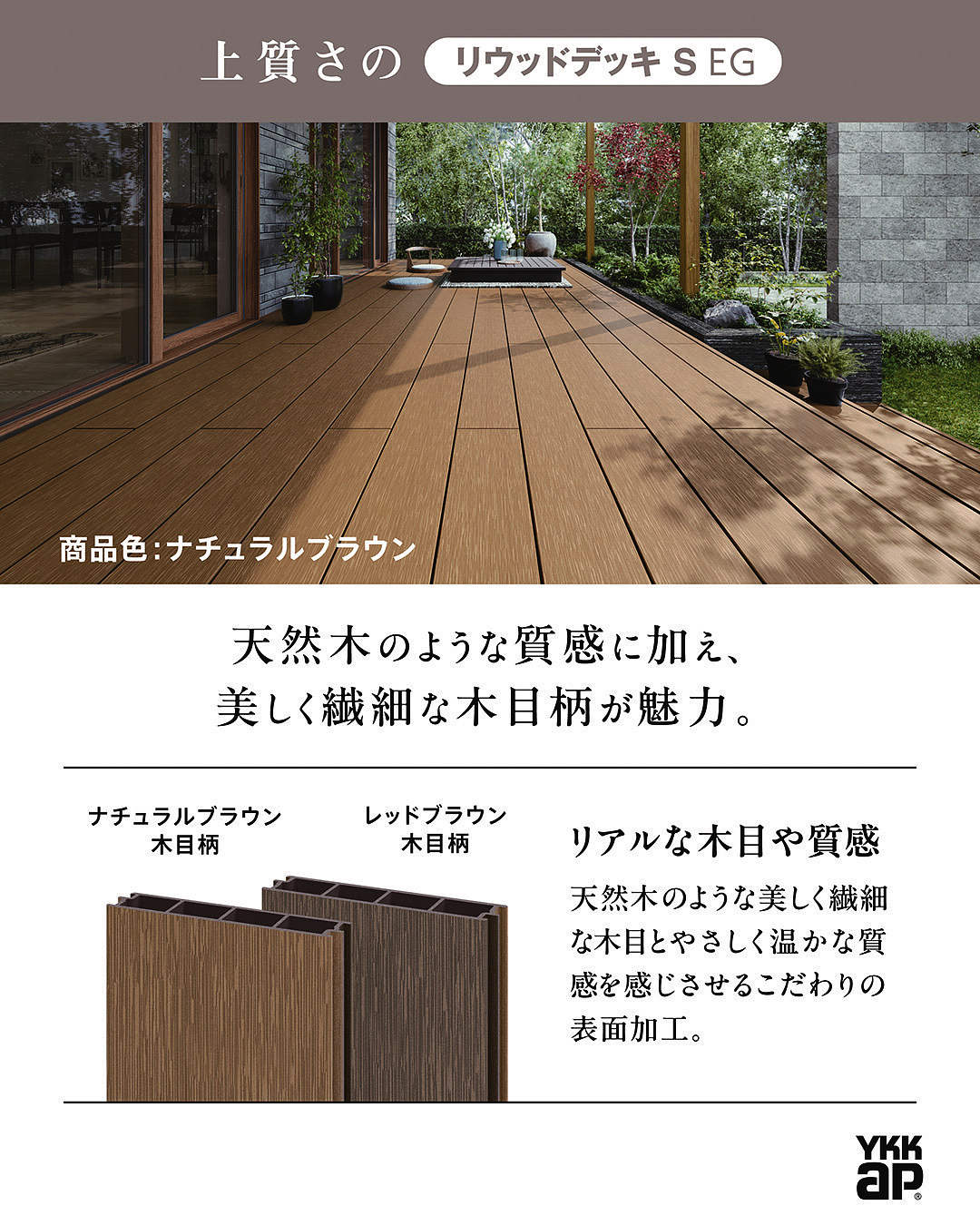 デッキ表面にロール成型で凹凸のある木目柄を表現。