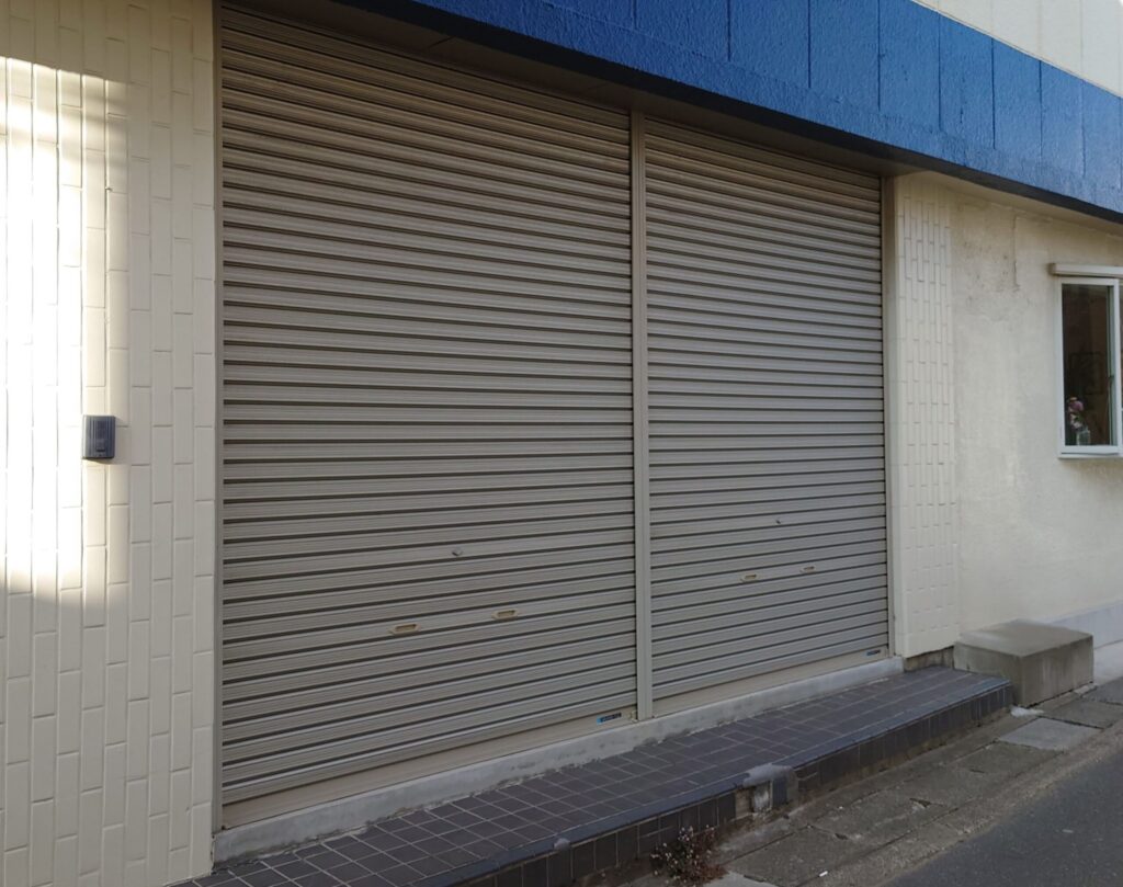 シャッターで閉め切られていた開口部にガラスの店舗ドアを施工させていただきました。